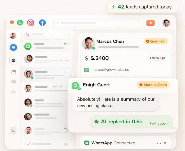 Capture leads, reply instantly, and recover abandoned carts using AI — all in one platform built for businesses that sell online.